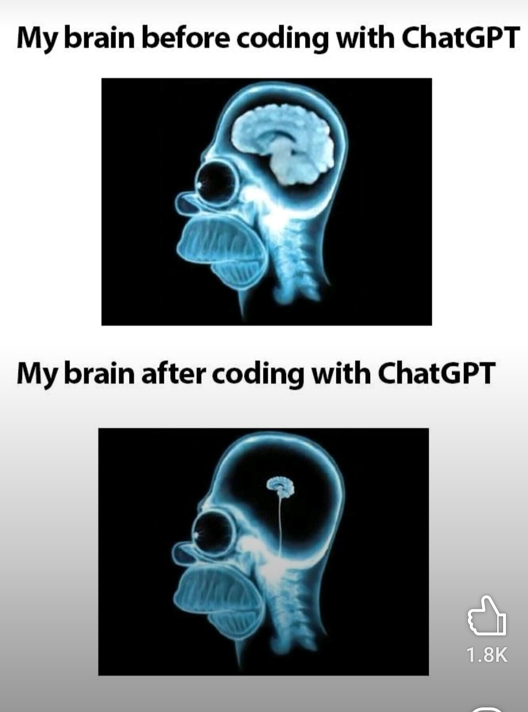 I don't fear AI replacing me. I fear me replacing myself with AI.